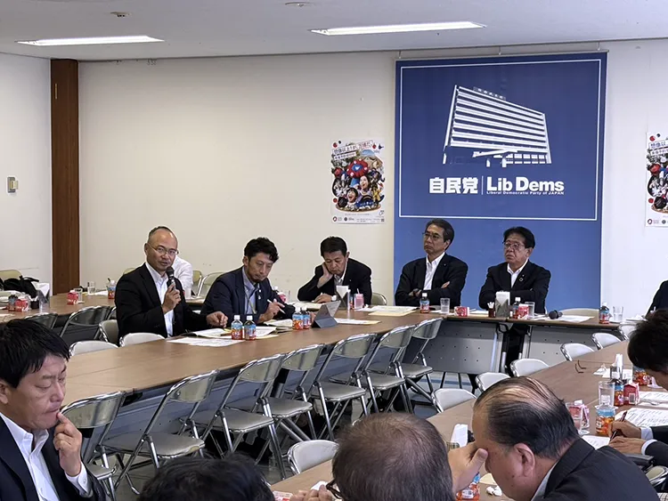 9月18日(木)、自民党の農業構造転換推進委員会と農業基本政策検討委員会の合同会議が開催され、JA全青協より北川敏匡会長、星敬介副会長が参加しました。